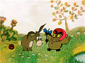 Задание - Здравствй, Винни! - Привет, Пятачок. Ты что тут делаешь? - Плохие новости, Пятачок. У ослика Иа хвост пропал. - Кто пропал? - Хвост. А у него как раз день рождения. Подсказка - Где-то здесь кажется... нет, не то... как же это я... нет... нет, нету... Куда же это я... ай-яй-яй-яй-яй... Вот. Я подарю ему горшочек меду. Это его утешит. - Пух! Можно я тоже подарю его? Как будто от нас обоих. - Нет, на обоих, пожалуй, не хватит. - Тогда... тогда я подарю ему воздушный шар. У меня еще остался один, зеленый, помнишь? - Шар? Это подойдет. Воздушным шаром можно кого хочешь утешить. Давай, неси его скорей. виннисгоршкомсмедом133 Ответы винни777говорить566пяточек33 пяточек33говорить566винни777 Бонус №2 "2" для всех Задание Подсказка Лучший подарок, по-моему, мед! Это и ослик сразу поймет. Даже немножечко, чайная ложечка, Это уже хорошо, Ну а тем более полный горшок! Но мед это очень уж хитрый предмет - Всякая вещь или есть, или нет. А мед - я никак не пойму в чем секрет - Мед если есть - то его сразу нет. ... ... ... вполне, ... ... хватило бы мне. ... ... ... пока, ... ... половина горшка. - Так, куда это я собрался идти? Ах да! Вот горшок пустой - Он предмет простой. Они никуда не денется! И потому горшок пустой, И потому горшок пустой Гораздо выше ценится! Конец твоим страданьям и разочарованьям, И сразу наступает хорошая погода! Когда тебе или ему, когда ну все равно кому - Только не мне! Подарят в день Рождения горшок из мёда! горшокбезмеда333 Ответы винни777взять34горшоксмедом276 Бонус №3 "3" для всех Задание Подсказка - Сова! Открывай! Медведь пришел. - А, здравствуй, Винни-Пух. Какие новости? - Грустные и ужасные. У ослика Иа хвост пропал. - Хвост пропал? Хе-хе-хе-хе. Ну и что? - Он очень огорчен. Ведь у него как раз сегодня день рождения. - Понимаете, если бы хвост пропал в какой-нибудь другой день - это никто бы не заметил. А тут... - Сова. Надо его как-то утешить. - А ты что, ты что-нибудь придумал? - Да. Я подарю ему полезный горшочек. - Вот этот? - Да, и я хотел бы... Ответы винни777есть12горшоксмедом276 виннисгоршкомсмедом133есть12горшоксмедом276 Бонус №4 "4" для всех Задание Подсказка Ну да. Я как-то шла по лесу. Вижу - что такое? Висит шнурок. - На кустике? - Да, на кустике, как его, это... чертополоха. - Будь здорова! Ну, и что дальше? Ты как раз чихнула, когда собиралась сказать. - Я не чихала. - Нет, ты чихнула, Сова. Извини, я тебя перебил. - Прости, пожалуйста, Пух, но я не чихала. Нельзя же, понимаешь, чихнуть и даже не знать, что ты чихнула. - Но и нельзя знать, что кто-то чихнул, если никто не чихнул. - Я тебе говорю... - Извини, ты еще не досказала про шнурок. - Да. Ну да, ну шнурок, ну . Ну сначала я подумала, я подумала - а вдруг там кто-нибудь живет. Я позвонила, и мне никто не ответил. Вообще. - Ну вот, опять чихнула. Будь здорова. - Я позвонила еще раз. - Будь здорова. И что? - Потом еще. - Будь здорова. - А потом я позвонила очень громко, и... И... А-ПЧХИ! Что такое? Ото-оторвался. - Оторвался. Понятно. - Чих!.. А так как он, по-моему, чих... никому не нужен, я взяла его домой. Апчхи! - Сова, а ведь он кому-то был очень нужен. - Нужен? Интересно, кому это он был нужен? - Моему другу Иа. Он очень любил его. Был к нему привязан. - Чхи! - Если ты подаришь ему на день Рождения этот шнурок - он будет просто счастлив. - Чхи! - Будь здорова. хвост1313 Ответы винни777говорить566сова55 сова55говорить566винни777 Бонус №5 "5" для всех Задание Подсказка пятачексзеленымшариком44 Ответы винни777смотреть456звонок456 Бонус 
