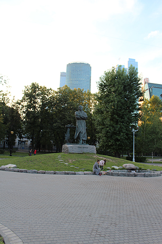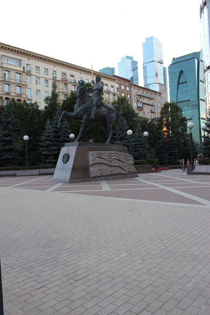 От афишного щита поворачиваем налево и спускаемся в пешеходный переход. Выйдя из перехода справа видим зелёную надпись на белом фоне. Проходим немного вперёд и по правую руку от нас находится мужчина на коне. Вокруг него столпились люди. Среди всех этих людей есть женщина. Какая у неё фамилия? Примечание: пройдите маршрут по описанию и приметам. ФО: слово