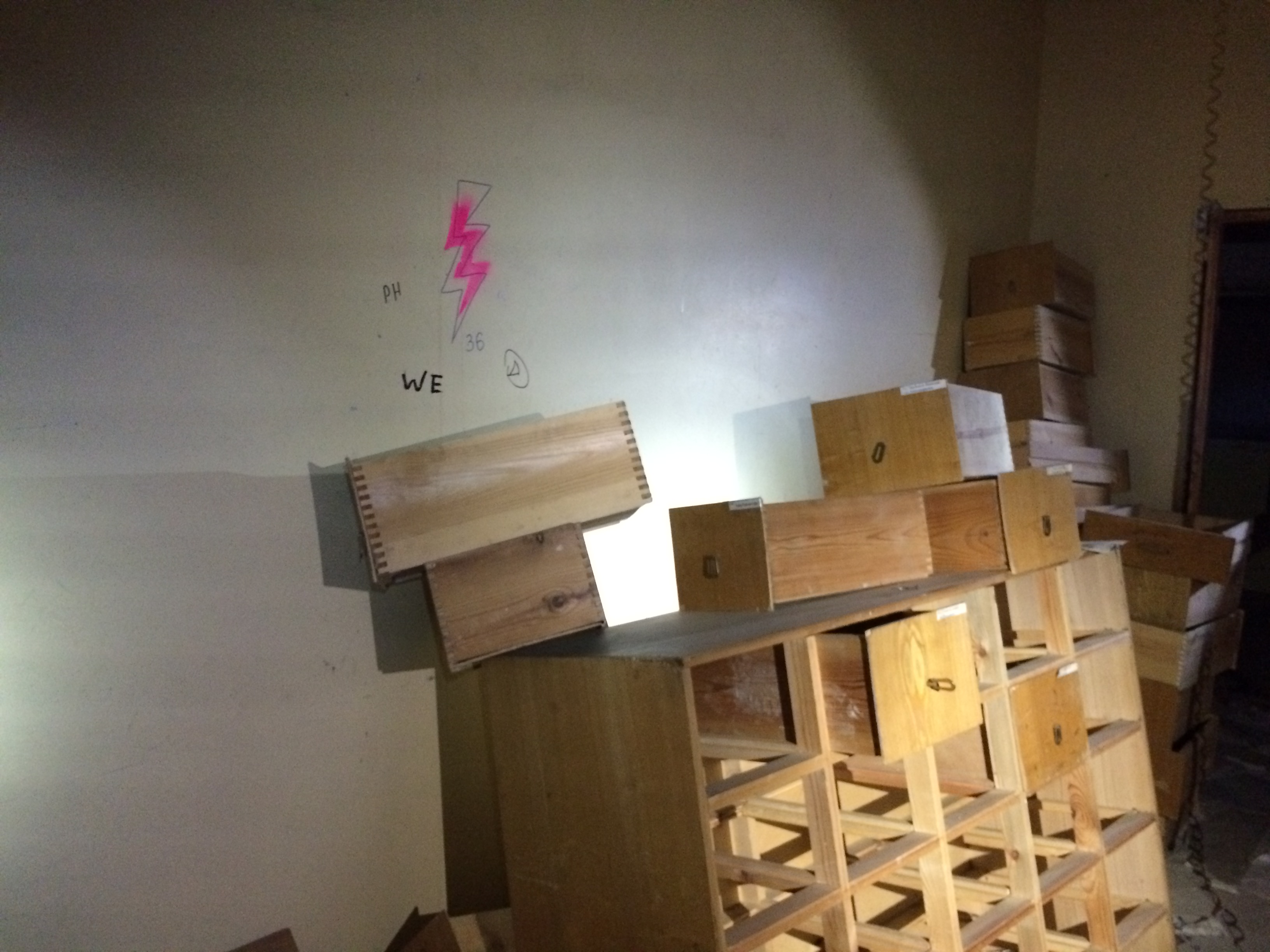 Схема дохода Примечание: До локации идти без фонарей. При заходе на локацию поднимаемся по деревянной лестнице, затем направо и в подвал. Играет -1 этаж. Ищем допы/артефакты. Они распологаются на коробках. На сцепленных коробках одинаковые артефакты/допы, руками их не трогать, не переносить и не ломать!!! На уровне 33 знака в виде букв. На уровне присутствуют инквизиторы. Вскройте конверт с северной стороны!