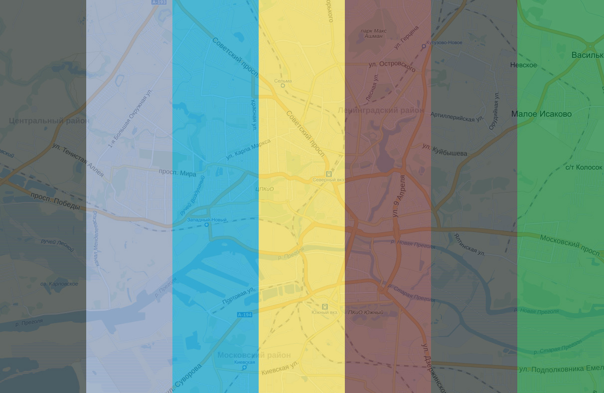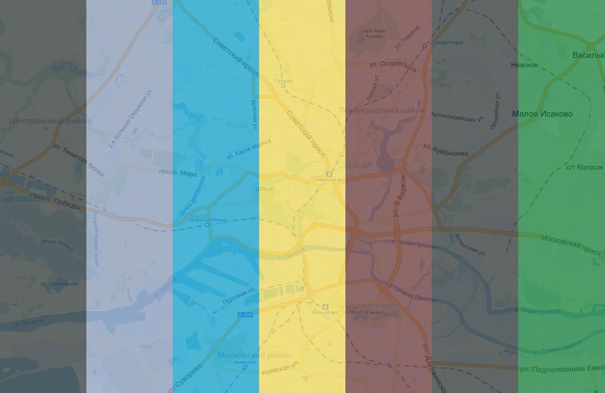 Надеемся, Вы нашли данный фрагмент Калининграда. Вам поможет то, что в самом центре картинки, и расцветки его тёзки.