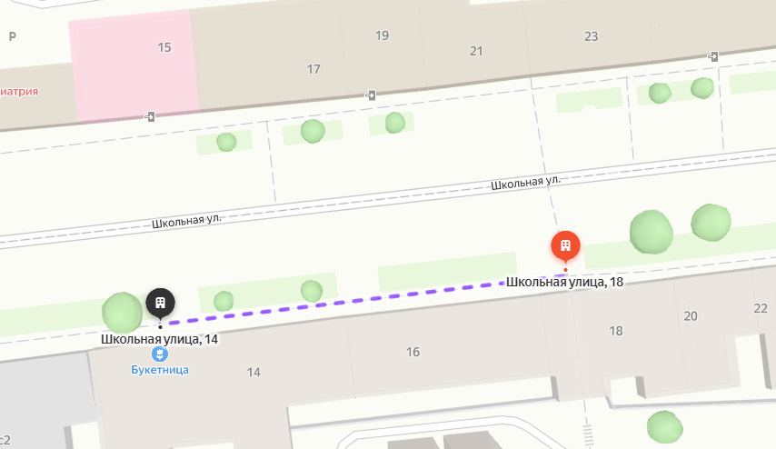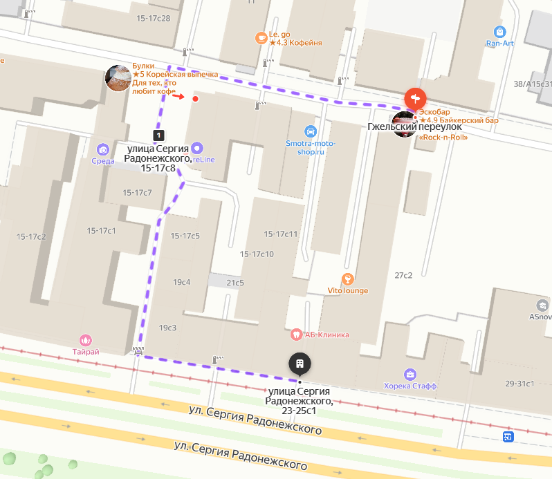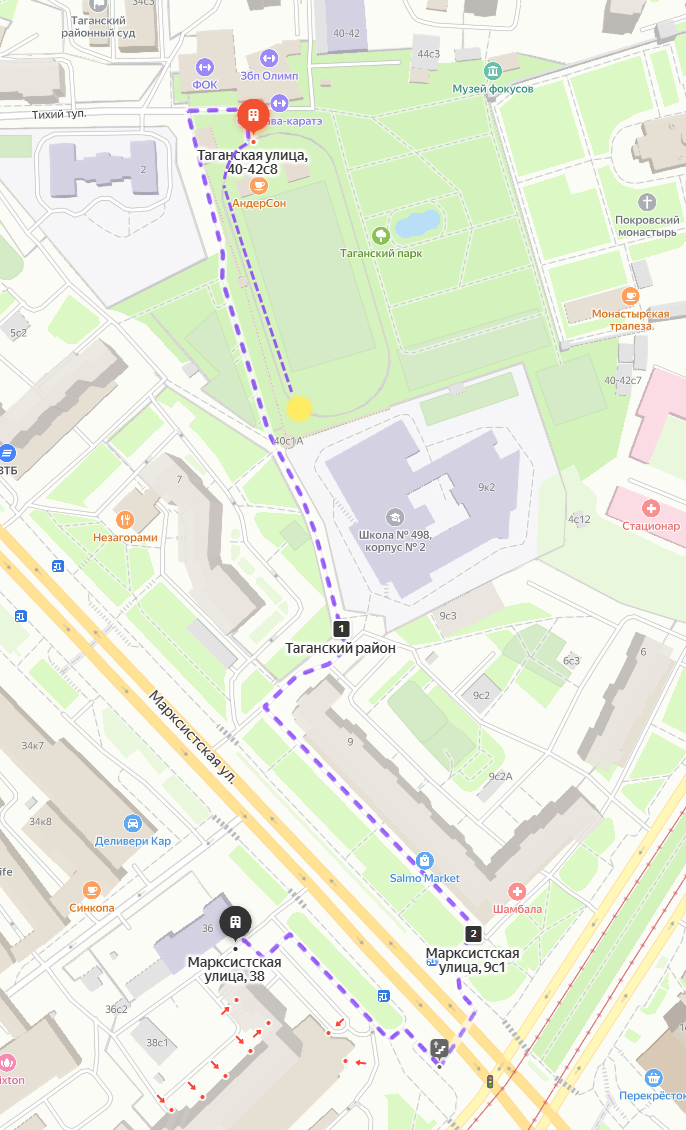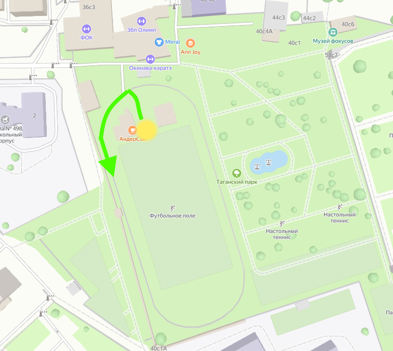Вы в жёлтом круге. Идём вдоль пунктира мимо красной точки в черную. На значки-номера яндекса на карте не смотрим, они не играют. В конце встаём у шлагбаума во двор. На доходе 2 фотометки. Одна для совы №71, другая для 69. За каждую по минуте. ФО: часть тела ФО: часть одежды