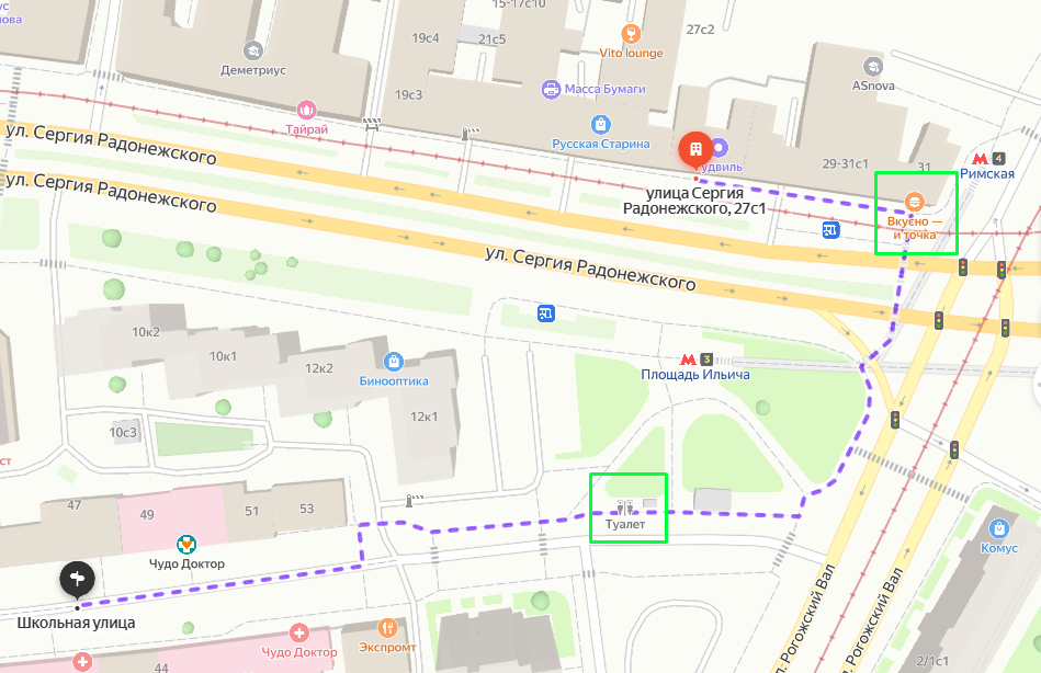 Пройди из красного в черноё. В конце дохода встань напротив "Поколения Некст". На доходе 2 туалета на любой вкус - макдак и платная будка, выделены зеленым. Подсказка с апом придёт через 4 минуты 15 секунд, но уровень является туалетной паузой, поэтому будет снят.