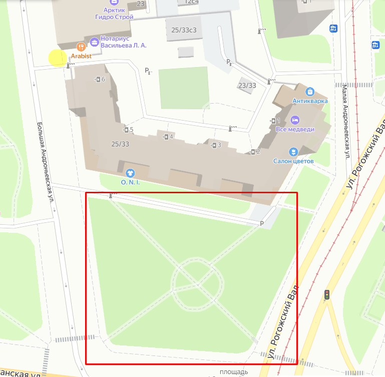 На этой улице не заигран ни Бендер, ни совы, ни Эскобар. Вы в жёлтом круге. Играет область в красном прямоугольнике.